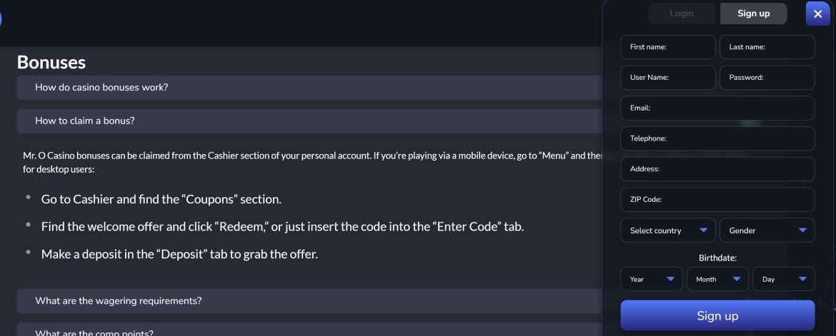 Claiming your bonus at Mr.O Casino is straightforward, making it easy to start playing without spending any money. Follow these simple steps to get your bonus and dive into the action:
